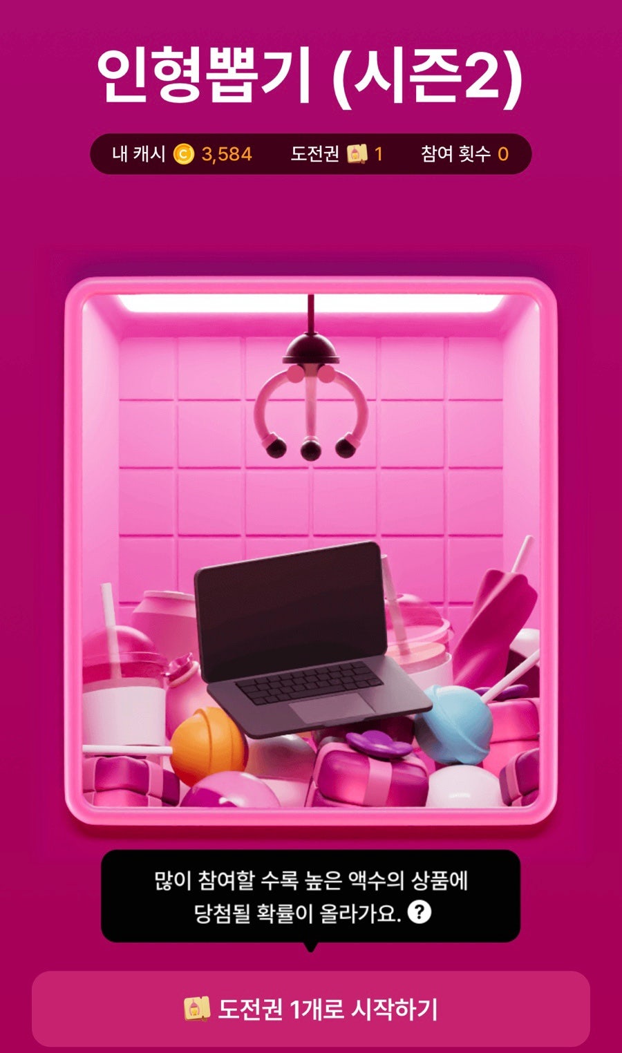 🖤도전권 or 100캐시로 참여가능